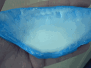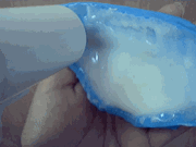 STEP 2: When ready to use simply warm the gelatin with a blow drier until the surface is sticky and slightly liquid. Check for readiness by touching it with your finger for warmth. Do not apply if it is too hot. If its sticky, its ready. The surface of the gelatin should be fluid but the entire appliance should NOT be melted |