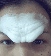 STEP 3: Clean the skin with an astringent (Sweat Stop) to remove any oils or old make up. Press the "Quick Cast" into place and hold until gelled. Sometimes a cool towel held over the mold helps to get an even pressure. Its ok if some material comes out of the mold. Just make sure that the edges are tight. Allow the gelatin to cool and gently peel the mold from the appliance. Set with powder. |