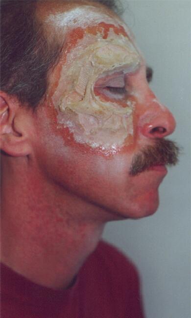STEP 2: On clean skin, brush on Spirit Gum and allow to get tacky. Place the appliance over the Spirit Gum. Press into place and hold for a count of 30.